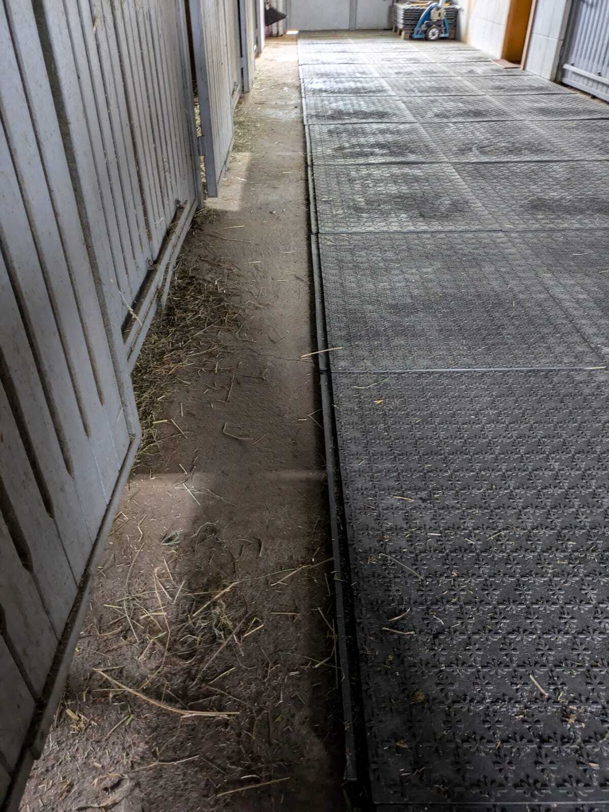 System montażu "pióro-wpust" sprawia, że instalacja jest szybka i bezproblemowa, a całość tworzy stabilną, jednolitą powierzchnię bez przesunięć. Maty są łatwe do czyszczenia i odporne na wilgoć, dzięki czemy utrzymanie higieny w boksie jest wyjątkowe proste.